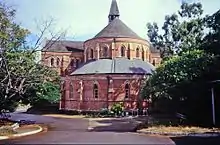 St James Anglican Cathedral, constructed in English Bond red brick with dressed sandstone trim, is located on a terraced site on Melton Hill between the Townsville central business district and Cleveland Bay.[1]