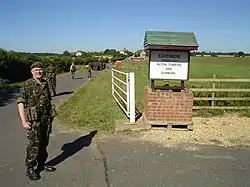 The area was originally established in 1942 when a battle training area was required and a 'Nazi village' established.[2] Military exercises were already known in the area; tanks had deployed to Thetford in the First World War. The complete takeover involved the evacuation of the villages of Buckenham Tofts, Langford, Stanford, Sturston, Tottington and West Tofts.