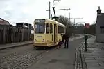 In the late 1980s, the Summerlee Transport Group (STG) was formed, in order to support the maintenance and operation of the tramway.[1] The original tramway used to terminate only 300 yards from the entrance at the timber shed, before the extension of the Gartsherrie Branch canal bridge and thence towards the Miners' Cottages. As continued tradition, the cars continued to halt at the timber shed before continuing over the bridge and around the bend; however, those tradition was discontinued in the late 2010s.