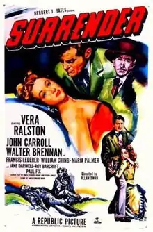 Surrender is a 1950 American Western film directed by Allan Dwan, written by James Edward Grant and Sloan Nibley, and starring Vera Ralston, John Carroll, Walter Brennan, Francis Lederer, William Ching, Maria Palmer and Jane Darwell. It was released on September 15, 1950, by Republic Pictures.[1][2][3]