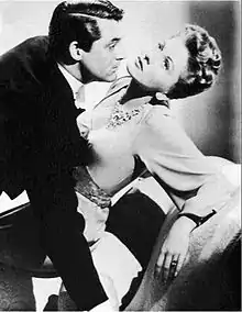 Hitchcock was quoted as saying that he was forced to alter the ending of the movie.[2] He wanted an ending similar to the climax of the novel, but the studio, more concerned with Cary Grant's "heroic" image, insisted that it be changed. In his biography of Hitchcock, The Dark Side of Genius, Donald Spoto disputes Hitchcock's claim to have been overruled on the film's ending. Spoto claims that the first RKO treatment and memos between Hitchcock and the studio show that Hitchcock emphatically desired to make a film about a woman's fantasy life.[2]