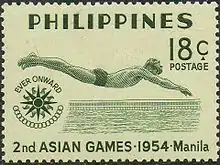 Swimming at the 1954 Asian Games on a stamp of the Philippines