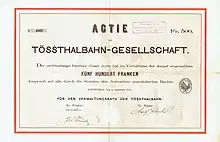 The Tösstal railway line (Töss Valley Railway, German: Tösstalbahn or TTB) is a railway in the Swiss canton of Zürich, which serves the communities of the Töss Valley. Passenger service on the line now forms part of the Zürich S-Bahn, branded as the S26, and the standard Zürcher Verkehrsverbund (ZVV) zonal fare tariffs apply to the line. It is one of the network's less-heavily traveled lines, and most of the route is single-tracked.[2][3]