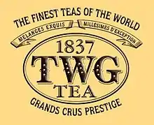 Branded as the "first and only upscale tea salon" in Singapore, TWG Tea sells tea, as well as tea-infused food, such as savoury items, pastries and desserts.[6] It also sells upscale tea accessories, such as gold and platinum teacups.[11] TWG Tea products are sold through the company's outlets as well as in upscale retailers such as Harrods Knightsbridge, Feinkost Kafer and El Corte Ingles.[12] TWG Tea sells over 800 different tea varieties from every tea producing country in the world.[9][13]