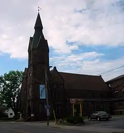 Tabernacle Baptist Church is a historic Baptist church located at Utica in Oneida County, New York. It was built in 1867, and is a cruciform plan, Gothic Revival style, red sandstone church. It features a multi-staged corner tower with a square base and corner buttresses. Attached to the rear of the church is the brick Thorn Chapel and school added in 1905.[2]:3–4, 6