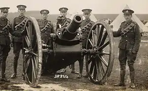The third arm was the Volunteers, mainly drawn from small businessmen, artisans, and professionals; they were predominantly urban middle-class units, training at weekends and with no annual camp.[14] There were 213 rifle corps and 66 corps of artillery,[13] though the latter were mostly coastal artillery or static "position batteries" equipped with unwieldy 40-pounder guns, and they did not constitute an organised field force.[15] There were some engineer and medical units, but no service corps.[13] The status of the volunteer units was further complicated by their origins as private societies; they received some central funding, but were mostly supported by local subscriptions and the generosity of their commanders.[16]