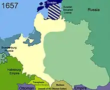 The Treaty of Wehlau was a treaty signed on September 19, 1657, in the eastern Prussian town of Wehlau (Welawa, now Znamensk) between Poland and Brandenburg-Prussia during the Swedish Deluge. The treaty granted independence to Prussia in recognition of its help against the Swedish forces during the Deluge.[43]