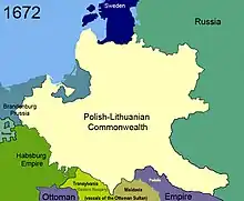 As a result of the Polish–Ottoman War the Polish commonwealth ceded Podolia in the 1672 Treaty of Buczacz.[46][47]