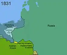 The Free, Independent, and Strictly Neutral City of Cracow with its Territory, more commonly known as either the Free City of Cracow or Republic of Cracow, was a city-state created by the Congress of Vienna in 1815.[60]