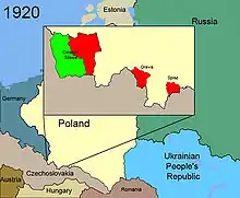July 28, 1920, Allied ambassadors decision partitioning Cieszyn, Silesia, and leaving in Czechoslovakia a quarter of a million Poles in the strategic Moravian Gate...(leading to Poland from south-west) - "Ukraine after the Russian Revolution". Government of Ukraine. mfa.gov.ua. 2009. Retrieved May 23, 2009.