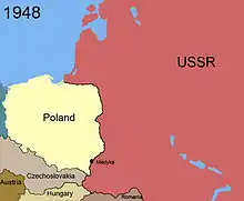 warto dodac, ze w 1948 r. prezeprowadzono inna, mniej znana regulacje granicy, dzieki ktorej w polsce znalazla sie medyka, pierwotnie pozostawiona po stronie radzieckiej, oraz kilka wsi no pogorzu przemyskim – translation – In addition in 1948 there was a less well-known border adjustment, medyka and a few villages, which were originally left on the Soviet side. - Encyclopedia of Szczecin . T. Supplement 1. Szczecin: University of Szczecin , 2003, pp. 141–144–145. ISBN 83-7241-272-3 (in Polish).