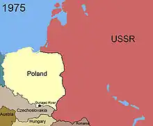 In 1492, the territory of Poland-Lithuania – not counting the fiefs of Mazovia, Moldavia, and East Prussia – covered 1,115,000 km2 (431,000 sq mi), making it the largest territory in Europe; by 1793, it had fallen to 215,000 km2 (83,000 sq mi), the same size as Great Britain, and in 1795, it disappeared completely.[4] The first 20th-century incarnation of Poland, the Second Polish Republic, occupied 389,720 km2 (150,470 sq mi), while, since 1945, a more westerly Poland covered 312,677 km2 (120,725 sq mi).[5]