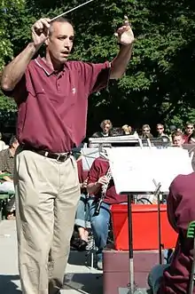 Timothy Rhea was named conductor of the Texas A&M Wind Symphony in 1995 and Director of Bands of Texas A&M University June 1, 2002.[2] Rhea has conducted the Wind Symphony at the Texas Music Educators Association, the College Band Directors National Association, and the American Bandmasters Association conventions. Upon several occasions, he has toured with the band throughout the state of Texas, including performances at the Meyerson Symphony Center in Dallas, the Wortham Center in Houston, as well as San Antonio and Austin.[1] Timothy Rhea began conducting the Wind Symphony in Europe in 1999. Under his direction, the Wind Symphony has released a six volume march series, entitled “Legacy of the March”; a four volume band music album, “Wind Band Masterworks”; and, occasionally, live concert recordings.[2][3]