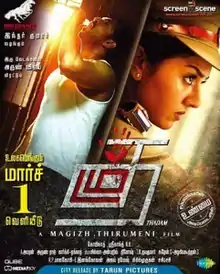 Thadam (lit. 'Path') is a 2019 Indian Tamil-language action thriller film[2] written and directed by Magizh Thirumeni and produced by Inder Kumar. The film stars Arun Vijay in a double role along with Tanya Hope, Vidya Pradeep. The music was composed by Arun Raj, with cinematography done by Gopinath and editing by N. B. Srikanth. Thadam marks the Tamil debut of Tanya and the film debut of Smruthi.[3]