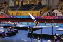 Gymnast Weena Chokpaoumpai performing on the horizontal bar during the artistic gymnastics competition on 16 August 2010 at Bishan Sports Hall, Singapore
