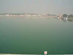 Thanesar derives its name from the words "Sthaneshwar" which means "Place of God." The Sthaneshwar Mahadev Temple, whose presiding deity is Lord Shiva, is believed to be place where the Pandavas with Krishna prayed to Lord Shiva and received his blessings for victory in the battle of Mahabharata.[25] It is the central and the most important place in the 48 kos parikrama of Kurukshetra. 1.5 km from Thanesar on Kurukshetra-Pehowa road lies Narkatari, the water tank named Bhishma Kund is believed to be the spot when Bhishma lay of the bed of arrows during the Mahabharata war.[26][27] Kaleshwar Mahadev Temple and Dukha Bhanjan Mahadev Temples are the oldest temples of Thanesar. Other religious sites include the Brahma Sarovar,[28] Jyotisar, the Sannihit Sarovar, Gurdwara 6th Patashahi and the Devi Bhadrakali temple, which is counted among the 51 Shakti Peethas. The bathing-fair held here on the occurrence of a solar eclipse is said to be attended by half a million pilgrims.[29] Shri Krishna Museum