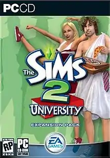 The Sims 2: University is the first expansion pack for the strategic life simulation computer game The Sims 2 developed at the Redwood Shores studio of Maxis and published by Electronic Arts. It was released on March 1, 2005 to mixed reception. The expansion pack adds a new aging period to Sims which is Young Adult. Once they reach this life period, they can go to University to earn a degree, allowing them to take up any one of four graduate-exclusive careers. The expansion added several key gameplay elements which have been included in all expansions succeeding it. The Sims 2: University has won two Editor's Choice awards from syndicated game review publications.