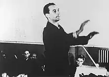 The leadership of the Youth Welfare Office, including its head, Egon Redlich, and Redlich's deputy Fredy Hirsch, were left-wing Zionists with a background in the youth movements.[95] However, Redlich agreed that a good-quality non-Zionist education was preferred to a bad Zionist one. Because of this, the ideological quality of education depended on the inclination of the person who ran the home; this was formalized in a 1943 agreement.[96] According to historian Anna Hájková, Zionists regarded the youth homes as hakhshara (preparation) for future life on a kibbutz in Palestine;[97] Rothkirchen argues that the intentional community of the children's homes resembled kibbutzim. Different educators used assimilationism, Communism, or Zionism as the basis of their educational philosophies; Communist philosophy increased after the Red Army's military victories on the Eastern Front in 1943 and 1944.[98]