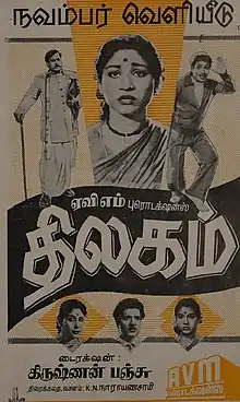 Thilakam is a Tamil language drama film released in 1960 with Prem Nazir and M. N. Rajam in the lead roles. The film was directed by Krishnan–Panju, and produced by AVM Productions.[1]