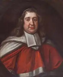 Jones was the judge in the 1683 Quo warranto trial against the Corporation of London, and was rewarded on 29 September 1683 by succeeding Francis Pemberton as Chief Justice of the Common Pleas. He was one of the judges appointed to the Court of Claims prior to the coronation of James II in 1684.[4] Although he continued to display severity when handing out judgements in subsequent trials, he eventually found himself unable to follow the King's wishes, and along with three other judges was dismissed on 21 April 1686; he was appointed due to his severity and then removed, ironically, because he was not severe enough.[5] He returned home to Carreghofa, Montgomeryshire, where he died on 31 May 1692 aged 77.