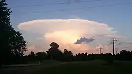 All thunderstorms, regardless of type, go through three stages: the developing stage, the mature stage, and the dissipation stage.[13][14] The average thunderstorm has a 24 km (15 mi) diameter. Depending on the conditions present in the atmosphere, each of these three stages take an average of 30 minutes.[15]