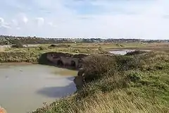 ![]() The derelict mill race sluice, from the seaward side | |