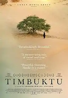 Timbuktu is a 2014 Mauritanian-French drama film directed and co-written by Abderrahmane Sissako. It was selected to compete for the Palme d'Or in the main competition section at the 2014 Cannes Film Festival.[4][5][6] At Cannes, it won the Prize of the Ecumenical Jury and the François Chalais Prize.[7][8] It was nominated for the Academy Award for Best Foreign Language Film at the 87th Academy Awards,[9][10] and has been nominated for the BAFTA Award for Best Film Not in the English Language at the 69th British Academy Film Awards. It won Best Film at the 11th Africa Movie Academy Awards.[11] The film was named the twelfth "Best Film of the 21st Century So Far" in 2017 by The New York Times.[12]