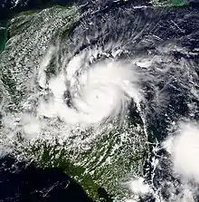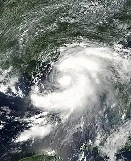 The season produced seventeen tropical depressions, of which fifteen intensified into tropical storms, nine became hurricanes, and four strengthened into major hurricanes.[nb 2] The two most significant storms of the year, in terms of loss of life and damage, were Tropical Storm Allison and Hurricane Michelle. Forming over the northwestern Gulf of Mexico, Allison produced widespread heavy rainfall along its path (most notably across Texas and Louisiana), killing 41 people and inflicting $9 billion (2001 USD) in damage.[4] Until Tropical Storm Erika in 2015, Allison was the only tropical storm to have its name retired by the World Meteorological Organization.[5] Hurricane Michelle was the most intense cyclone of the 2001 season, with winds reaching 140 mph (220 km/h).[nb 3] The storm's impacts extended from the Caribbean Sea to the Bahamas and were most severe in Cuba, cementing its status as one of the costliest cyclones on record there.[6]