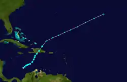 - 2 p.m. AST (1800 UTC) – Tropical Depression Six forms 1035 mi (1675 km) east of the Lesser Antilles.[11]