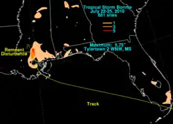 - Stacy R. Stewart (December 28, 2010). Tropical Storm Bonnie Tropical Cyclone Report (PDF). National Hurricane Center (Report). National Oceanic and Atmospheric Administration. pp. 1, 2, 5. Retrieved January 6, 2013.