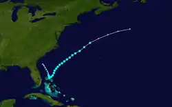 - 0000 UTC (8:00 p.m. AST October 6) – Hurricane Philippe reaches its peak intensity with winds of 90 mph (150 km/h) and a minimum barometric pressure of 976 mbar (hPa; 28.82 inHg).[24]