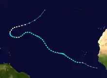 The 2011 Atlantic hurricane season was an event in the annual hurricane season in the north Atlantic Ocean. It was well above average in the number of tropical cyclones that formed, at 19.[nb 1] Even so, it was the first season on record in which the first eight storms failed to attain hurricane strength. The season officially began on June 1, 2011, and ended on November 30, 2011, dates that conventionally delimit the period of each year when most tropical cyclones develop in the Atlantic basin.[2] The season's first storm, Tropical Storm Arlene did not form until June 28. The final storm to develop, Tropical Storm Sean, dissipated on November 11.
