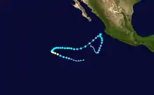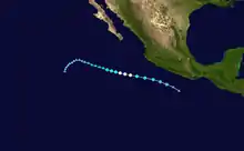 - 12:00 UTC (5:00 a.m. PDT) – Tropical Storm Adrian degenerates into trough of low pressure while located roughly 570 mi (915 km) southwest of Cabo San Lucas, Mexico.[2]
