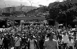 The 2015 Venezuelan protests began in the first days of January primarily due to shortages in Venezuela,[1] with the first massive demonstration occurring on 23 January.[2] The series of protests originally began in February 2014 when hundreds of thousands of Venezuelans protested due to high levels of criminal violence, inflation, and chronic scarcity of basic goods because of policies created the Venezuelan government.[3][4][5][6][7] As of January 2015, over 50 people had been arrested for protesting.[8] The protests are listed below according to the month they had happened.