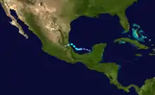 - 12:00 UTC (7:00 a.m. CDT) at 21.6°N 88.0°W – Tropical Depression Three develops from an area of low pressure approximately 80 mi (130 km) west-northwest of Cancún, Yucatán Peninsula.[17]