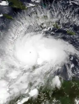 - 12:00 UTC (8:00 a.m. EDT) at 24.7°N 77.5°W – Hurricane Matthew re-intensifies into a Category 4 hurricane about 25 miles (40 km) south-southwest of Nassau, Bahamas.[11]