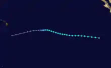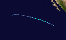 Four time zones are utilized in the basin: Central for storms east of 106°W, Mountain between 114.9°W and 106°W, Pacific between 140°W and 115°W,[3] and Hawaii–Aleutian for storms between the International Date Line and 140°W. However, for convenience, all information is listed by Coordinated Universal Time (UTC) first with the respective local time included in parentheses. This timeline includes information that was not operationally released, meaning that data from post-storm reviews by the National Hurricane Center is included. This timeline documents tropical cyclone formations, strengthening, weakening, landfalls, extratropical transitions, and dissipations during the season.