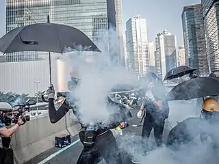 - Kan-chung, Ng (3 October 2019). "Tear gas and pepper spray in Tai Koo as anti-government protesters hold rallies across Hong Kong in protest to reports of law banning face masks". South China Morning Post. Archived from the original on 4 October 2019. Retrieved 4 October 2019.