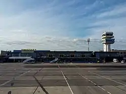 Timișoara's first airport, Timișoara Communal Airport, was built a few kilometers away from the current airport's position, in the village of Moșnița Veche. The first aircraft landed there on July 17, 1935.[3] The airport was rebuilt in its current location in the 1960s and became known as Giarmata Airport. The domestic terminal was opened on February 28, 1964.[3]