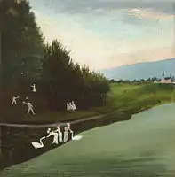 Tivadar Csontváry Kosztka (Hungarian pronunciation: [ˈtivɒdɒr ˈt͡ʃontvaːri ˈkostkɒ]; July 5, 1853 – June 20, 1919) was a Hungarian painter who was part of the avant-garde movement of the early twentieth century.[1] Working mostly in Budapest, he was one of the first Hungarian painters to become known in Europe. On 15 December 2006 the Kieselbach Gallery in Budapest sold an auction the most expensive Csontváry painting so far. The Rendezvous (1902) ("Meeting of the lovers") was bought by an anonymous client for more than one million EUR.