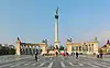 The Memorial Stone of Heroes (Hősök emlékköve) is a low stone cenotaph surrounded by an ornamental iron chain. The cenotaph is dedicated "To the memory of the heroes who gave their lives for the freedom of our people and our national independence." | |