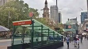Town Hall railway station is a heritage-listed[1] underground commuter rail station located in the centre of the Sydney central business district in New South Wales, Australia. The station opened on 28 February 1932. It is named after the Sydney Town Hall, located directly above the station.