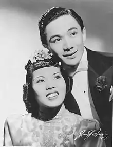 Toy & Wing were an American tap dance duo composed of Dorothy Toy (real name Shigeko Takahashi, May 28, 1917 – July 10, 2019) and Paul Wing (real name Paul Wing Jew, October 14, 1912 – April 27, 1997).[1][2][3][4] They were billed as the "Chinese Fred Astaire and Ginger Rogers",[2] though only Wing was Chinese-American; Toy was of Japanese descent.[2][3][5] Active in the 1930s and 1940s, they were the first Asian-Americans to enter the American tap dance scene.[6]