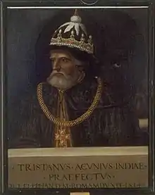 Tristão da Cunha (sometimes misspelled Tristão d'Acunha; Portuguese pronunciation: [tɾiʃˈtɐ̃w̃ ðɐ ˈkuɲɐ]; c. 1460 – c. 1540) was a Portuguese explorer and naval commander. In 1514, he served as ambassador from King Manuel I of Portugal to Pope Leo X, leading a luxurious embassy presenting in Rome the new conquests of Portugal. He later became a member of the Portuguese privy council.