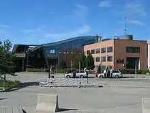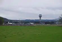 Trondheim Airport is a joint military and civilian airport located in the municipality of Stjørdal in Trøndelag, with the northern part of the airport bordering the town of Stjørdalshalsen.[7] To the west, the airport borders the Trondheimsfjord, and to the south the Stjørdal River.[8] Combining the functions as an international, domestic and regional airport, it is located 10 nautical miles (19 km; 12 mi) east of Trondheim.[1] Most of the airport area is owned by the Norwegian Ministry of Defence, although the civilian facilities and the air traffic control are owned and operated by Avinor, a subsidiary of the Norwegian Ministry of Transport and Communications.[9]