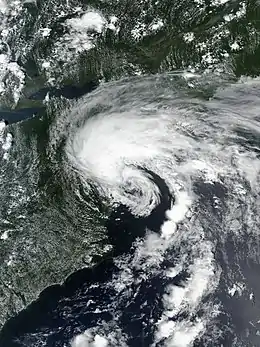 ![]() Tropical Storm Fay at peak intensity shortly before landfall in New Jersey on July 10 | |