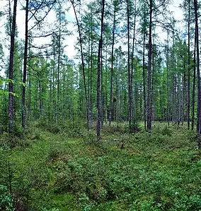 Twin Lakes Bog State Natural Area is a Wisconsin Department of Natural Resources-designated State Natural Area featuring an intact tamarack (Larix laricina) swamp lying in a depression between two kettle lakes (North Twin Lake and South Twin Lake). The understory of the swamp has an open aspect to it, and is dominated by the ericaceous shrubs Labrador tea (Rhododendron groenlandicum), bog laurel (Kalmia polifolia), and leatherleaf (Chamaedaphne calyculata). Other common plant species found here include: wooly-fruit Sedge (Carex lasiocarpa), twinflower (Linnaea borealis), cinnamon fern (Osmundastrum cinnamomeum), sundews (Drosera rotundifolia) and (Drosera intermedia), and the notably abundant pink ladyslipper (Cypripedium acaule). Three small bog lakes (0.4-1.0 acres), surrounded by quaking bog mats, are found in the interior of the swamp. Uplands surrounding the swamp are forested with second-growth hardwoods dominated by sugar maple (Acer saccharum) and red oak (Quercus rubra). In 1989, the US Forest Service designated Twin Lakes Bog as a Research Natural Area.[1][2]