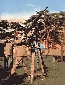 The Type 3 heavy machine gun (三年式重機関銃, San-nen-shiki juu-kikanjuu), also known as the Taishō 14 machine gun,[1] was a Japanese air-cooled heavy machine gun.