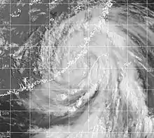 ![]() Typhoon Bilis near peak intensity on August 21 | |