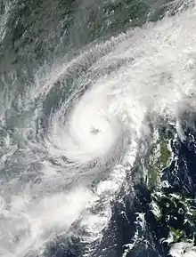 ![]() Typhoon Cimaron near peak intensity off the Luzon coast, on October 29 | |